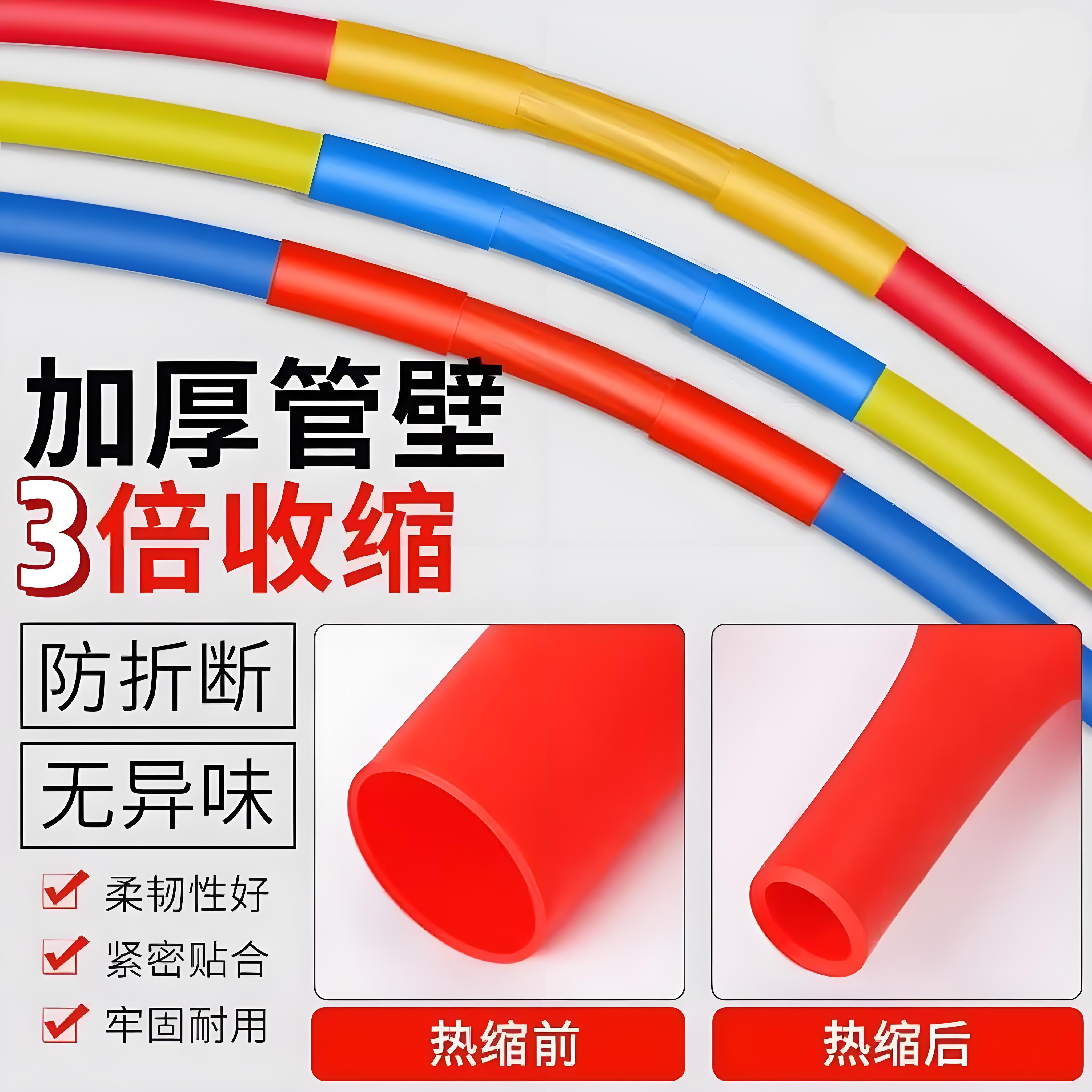 PE环保型带胶双壁热缩管是一种高性能的热缩材料。PE环保型带胶双壁热缩管,作为一种创新的电线电缆保护材料,正逐渐在电子、汽车、航空航天等多个领域展现出其独特的优势。这种热缩管不仅继承了传统PE热缩管的优良特性,如耐磨、耐腐蚀、绝缘性能强,更通过内置的环保型热熔胶层,实现了在加热收缩的同时,能紧密贴合被保护物体,形成一层牢固的防水、防潮屏障。