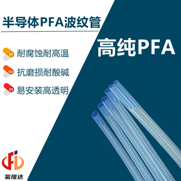 在半导体制造这一精密如微雕艺术的工业领域,高纯半导体PFA管犹如流淌在芯片生产线中的"超净血脉",高纯半导体PFA管其性能优劣直接决定着集成电路的良品率与可靠性。这种采用四氟乙烯-全氟烷氧基乙烯基醚共聚物(Perfluoroalkoxy)打造的管材,凭借其分子结构中碳-氟键高达485kJ/mol的键能强度,展现出惊人的化学惰性——即便在沸腾的王水或浓硫酸中浸泡500小时,其质量损失率仍低于0.01%,堪称抗衡腐蚀性介质的"终极铠甲"。