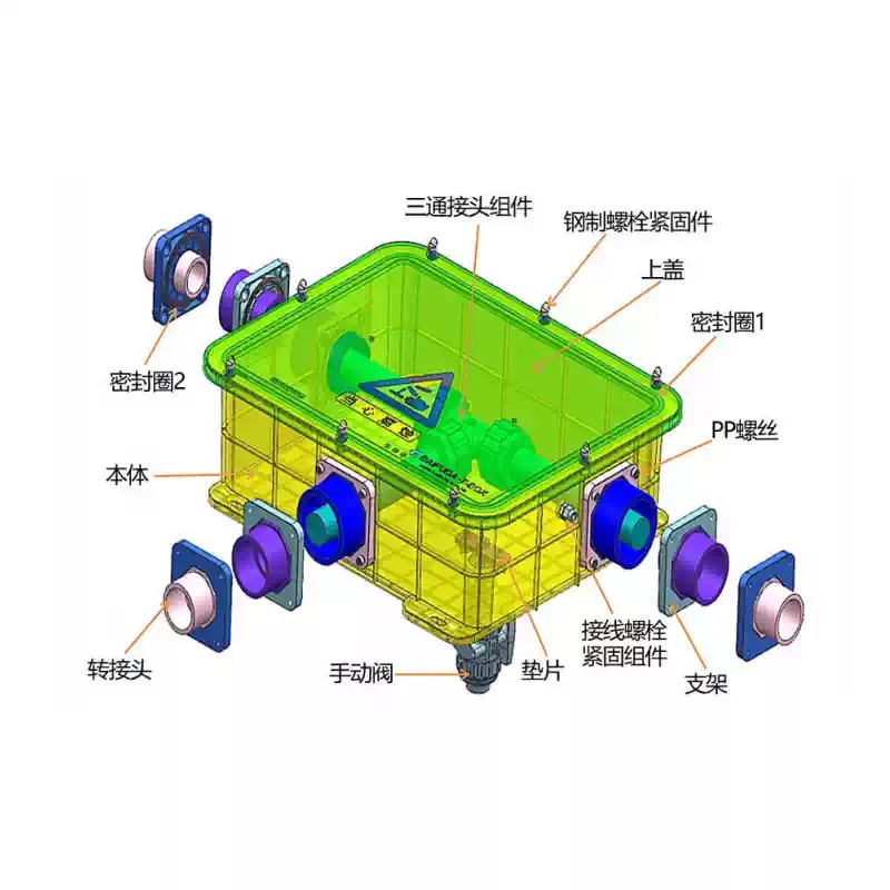 4、适用性广:PFA接头T-box二级防漏箱可以适用于多种材质的管道连接,如不锈钢、铜、塑料等。